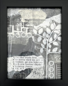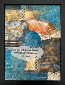 Här kommer att finnas bilder som är skapade av handtryckta och målade papper av olika slag och monterade på olika sätt.